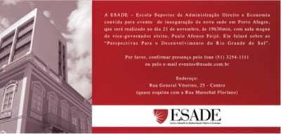 Maiores informações pelo fone: (51) 3254-1111 ou pelo e-mail eventos@esade.com.br